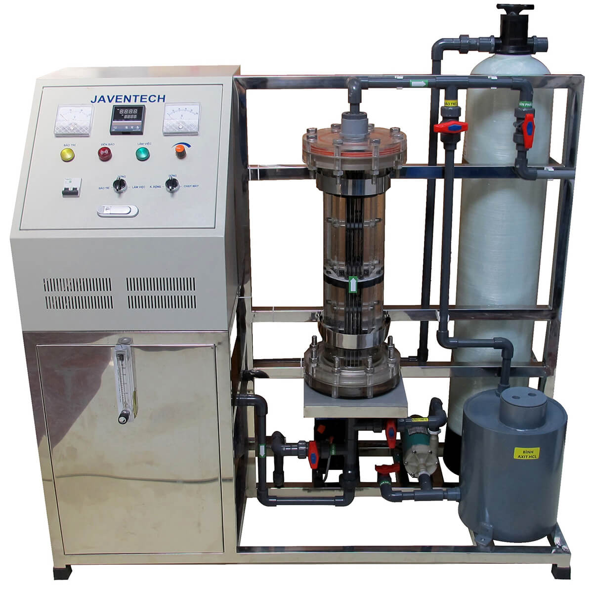 Thiết bị điều chế javen ứng dụng công nghệ điện phân muối ăn, được sử dụng phổ biến và rất thuận tiện để điều chế nước javen dùng cho việc sát trùng ngay tại chỗ tại các trạm xử lý nước, bệnh viện, bể bơi …